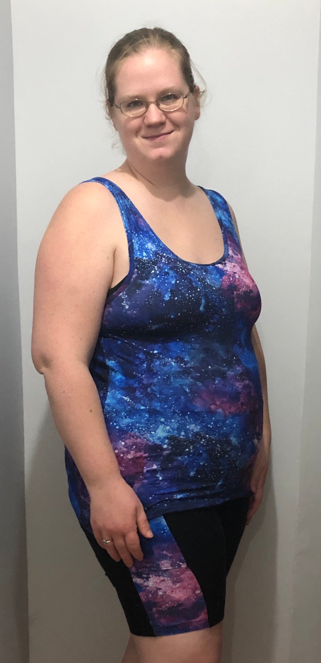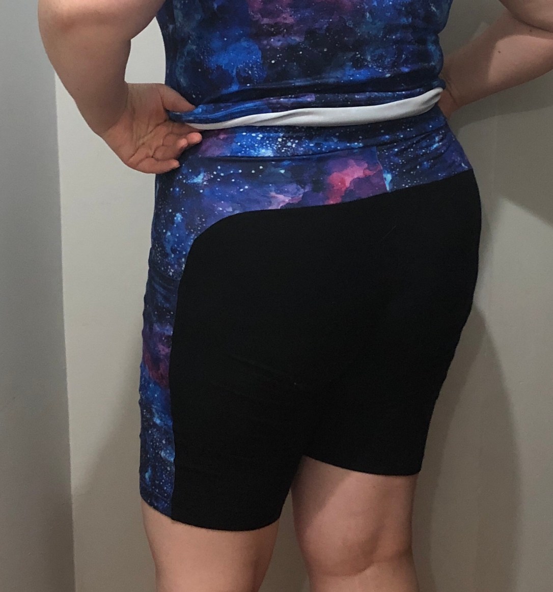 I also added power mesh into the waistband of my Strides shorts. I wasn’t paying attention when I was cutting out the power mesh and cut out one inner waistband and one outer waistband instead of 2 inner waistbands. But I just made sure that one of the power mesh pieces was at the front and one was at the back and that solved that problem. I am so happy with the fit of these shorts now! I haven’t had to adjust them while wearing them at all! I have also blogged about this pattern before here. These shorts are probably my favourite thing that I have made for myself!