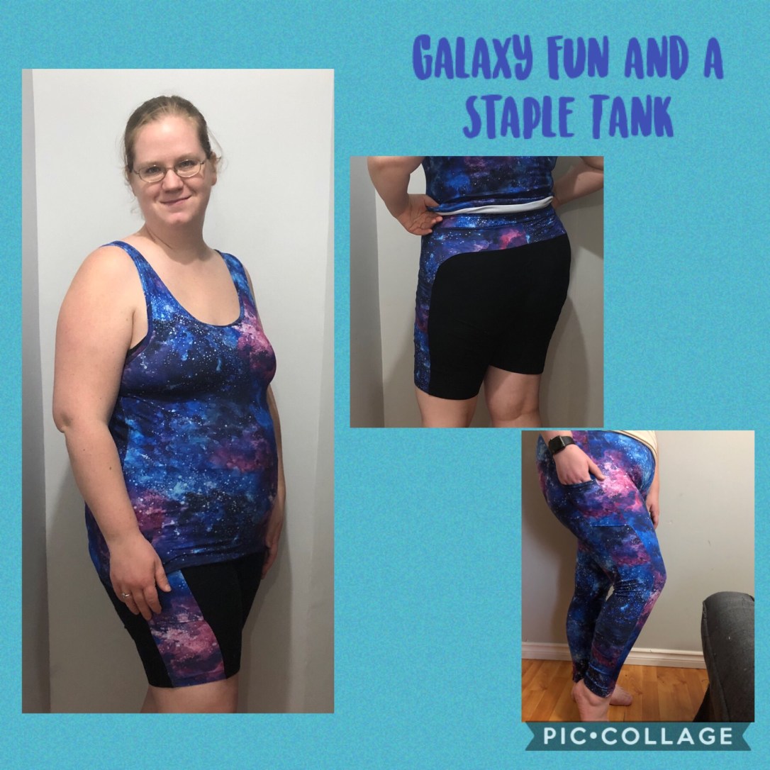 I finally got the chance to sew up some of the fabric I got for Christmas. Between Christmas presents, baby gifts and a few other projects I’m just now cutting into my galaxy print fabric that I got from The Fabric Snob. It is a double brushed polyester and very soft and comfortable! Unfortunately it is no longer available for sale as I’m writing this.